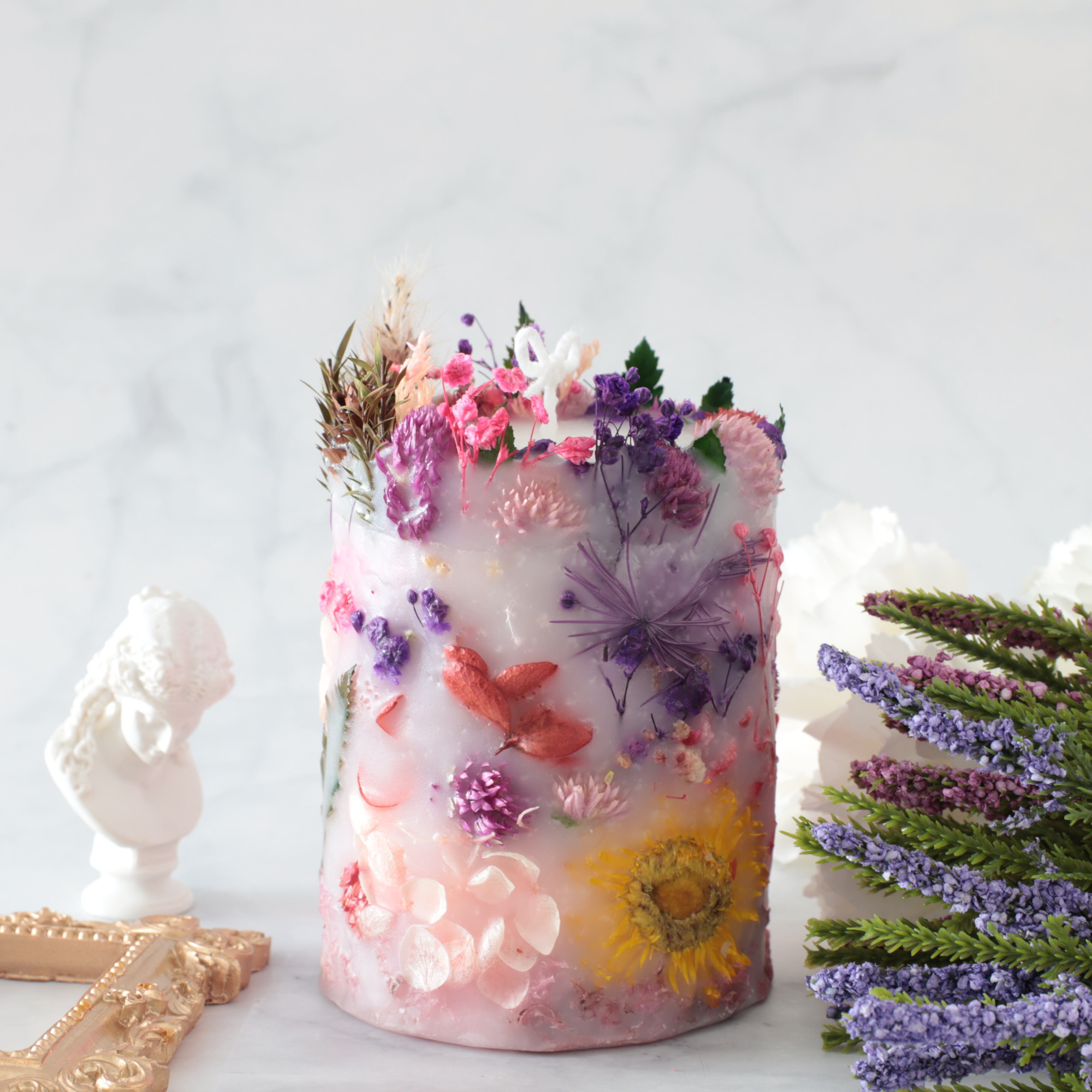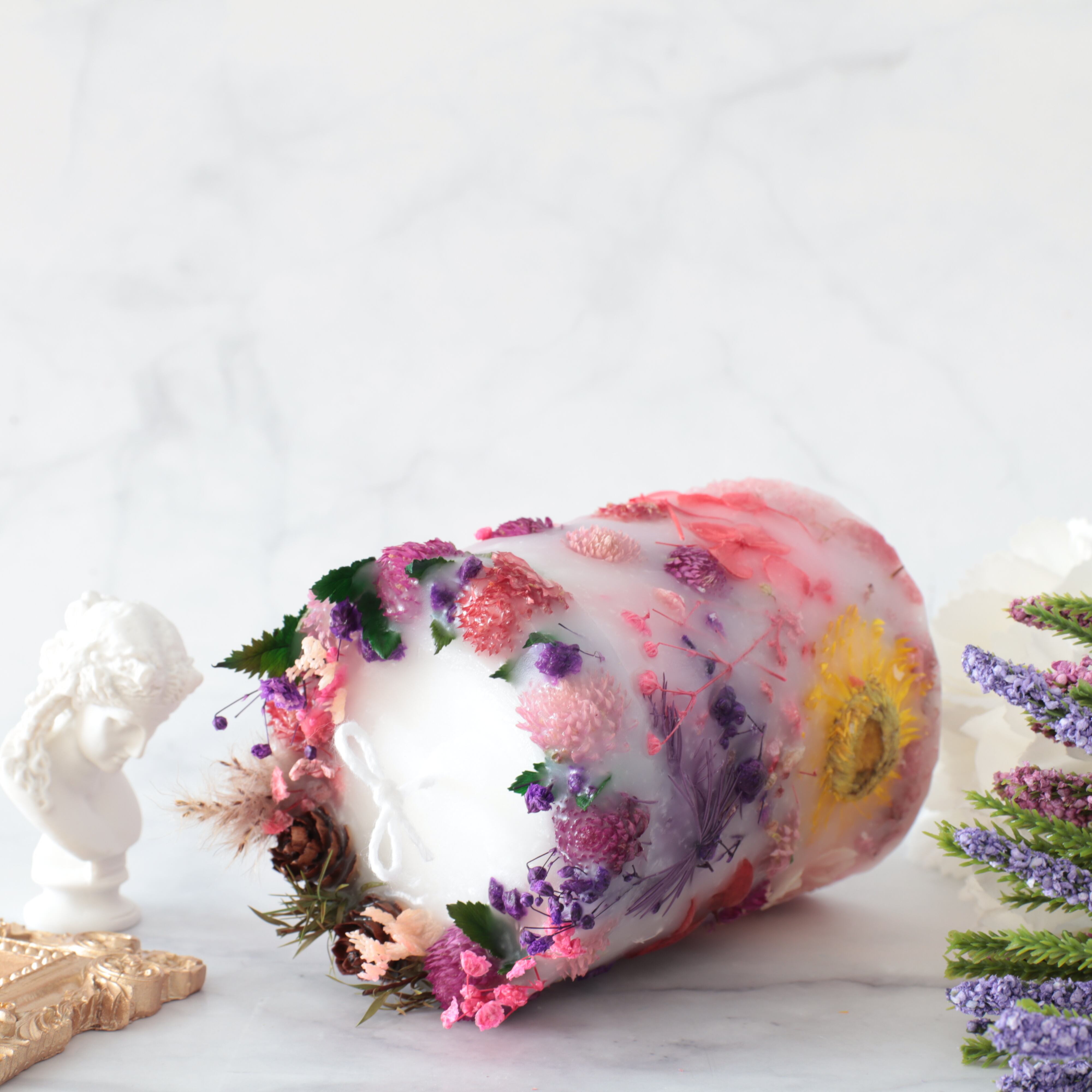 ボタニカルキャンドルは、花材に燃え移りやすいので常に芯を短くして、外枠が溶けないようにしてください。