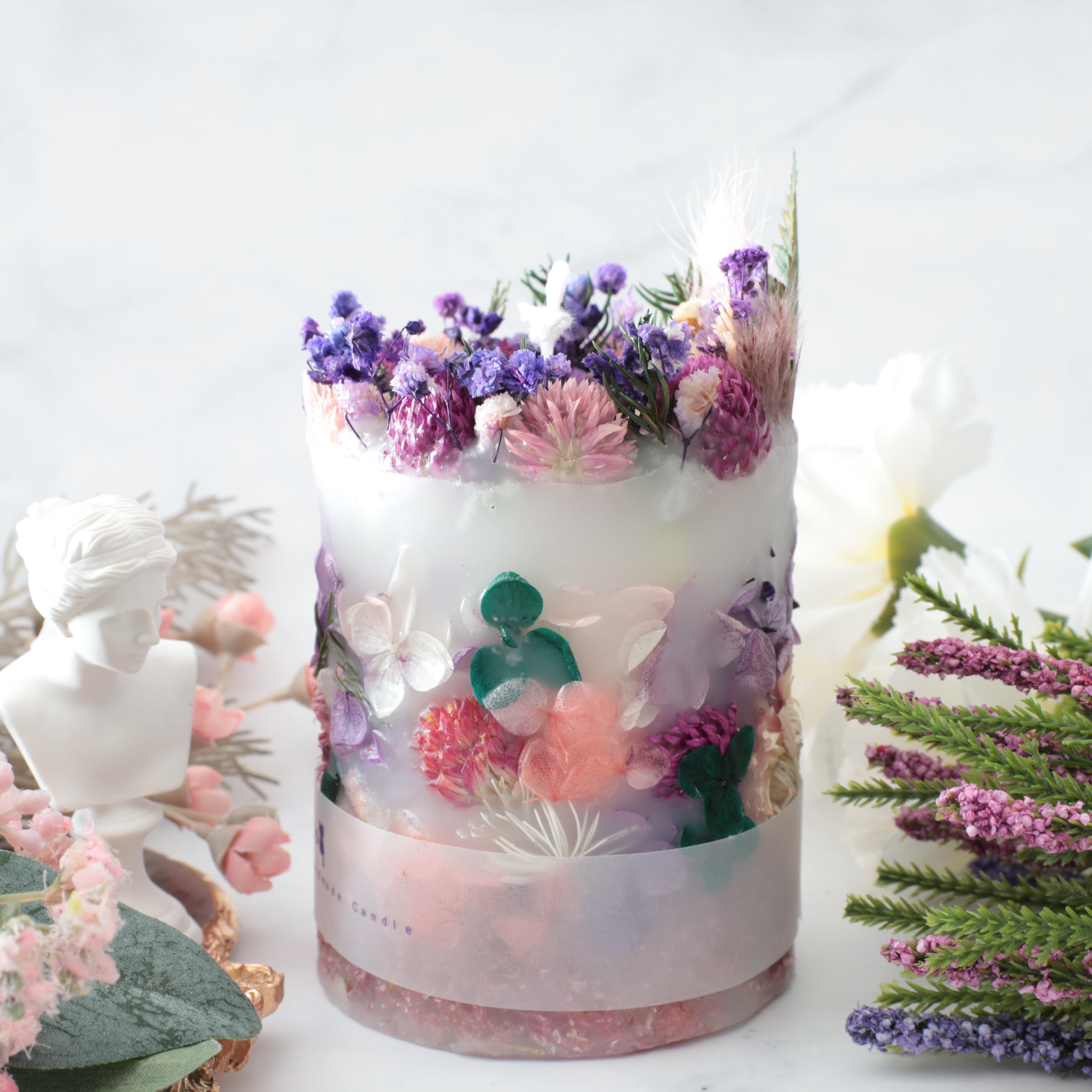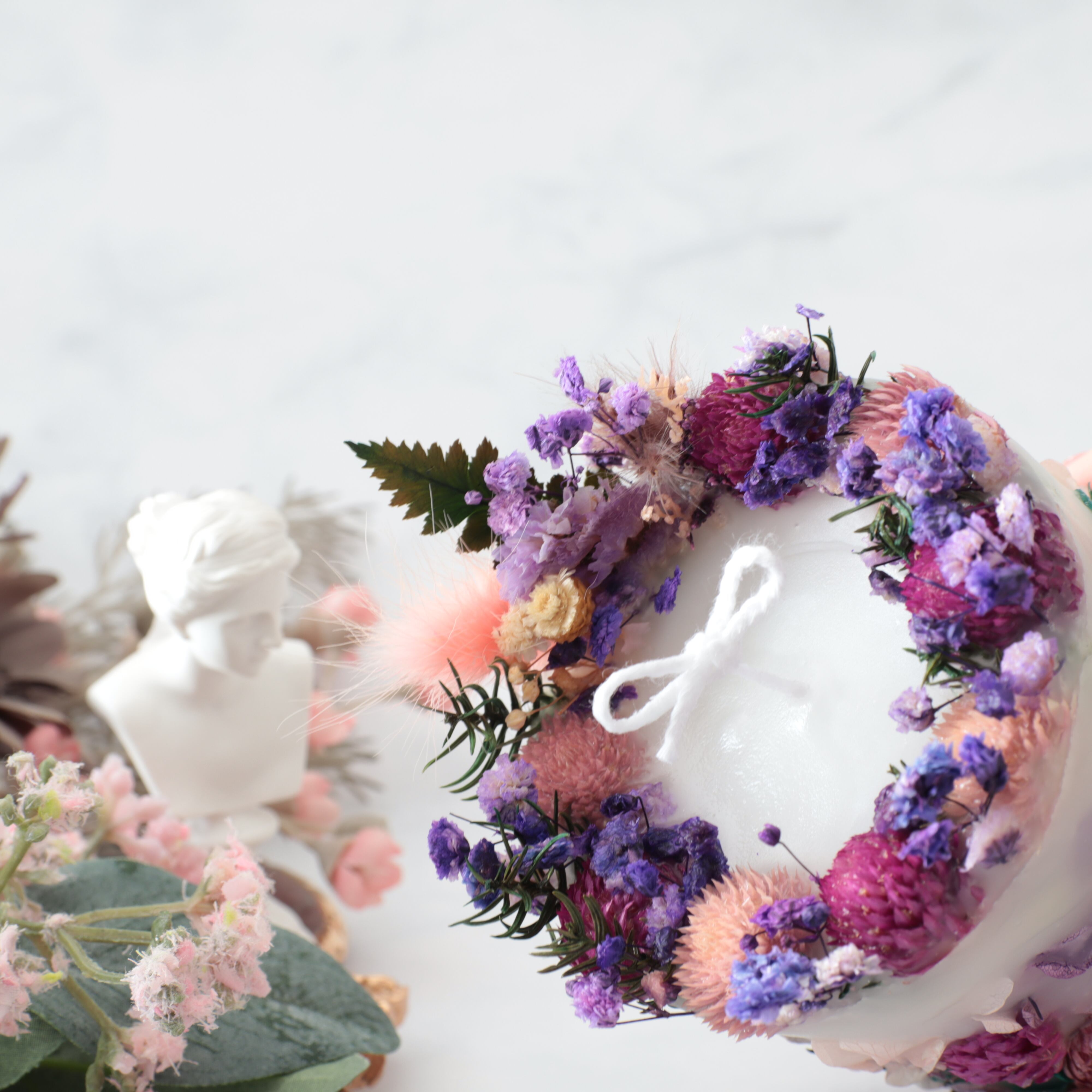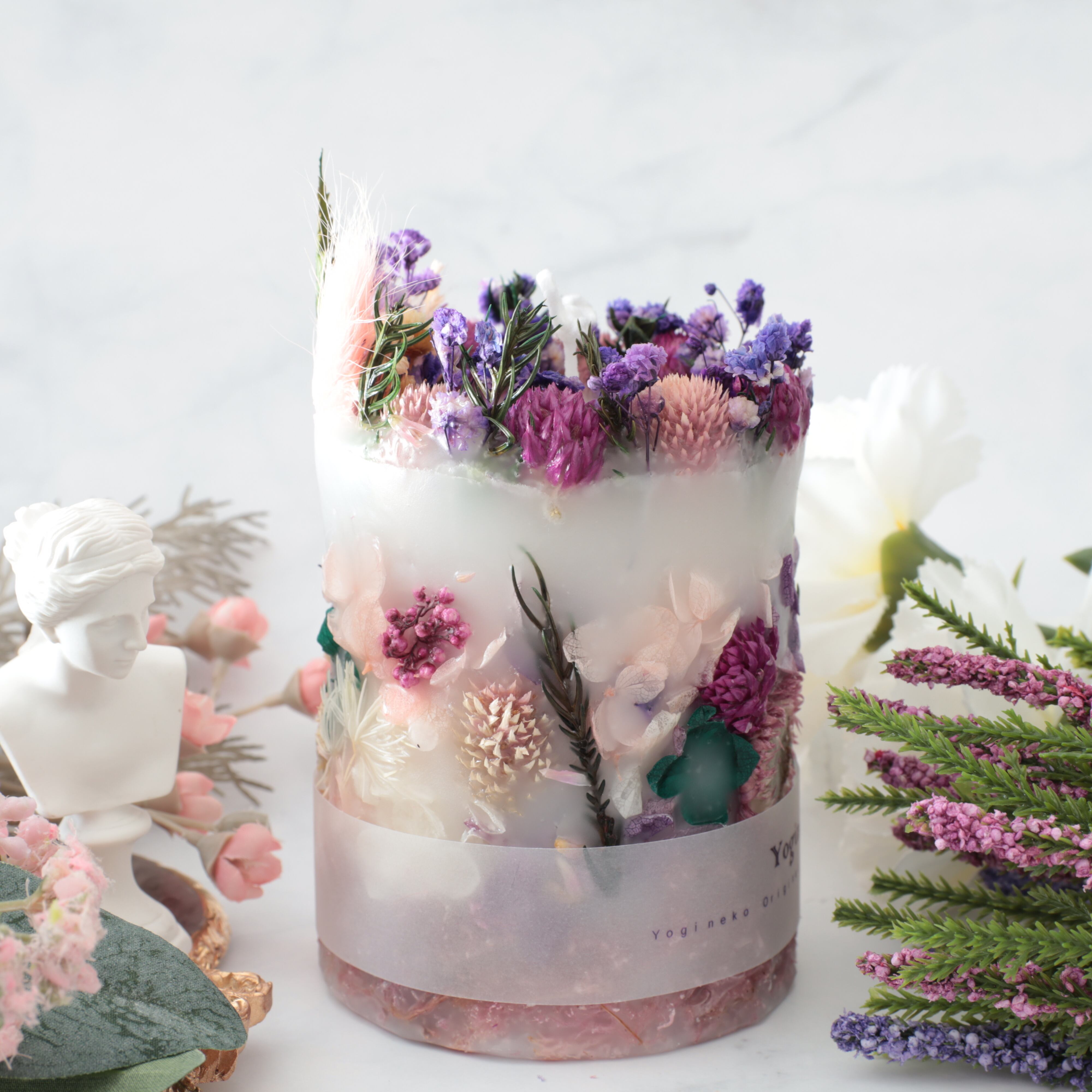 ボタニカルキャンドルは、花材に燃え移りやすいので常に芯を短くして、外枠が溶けないようにしてください。