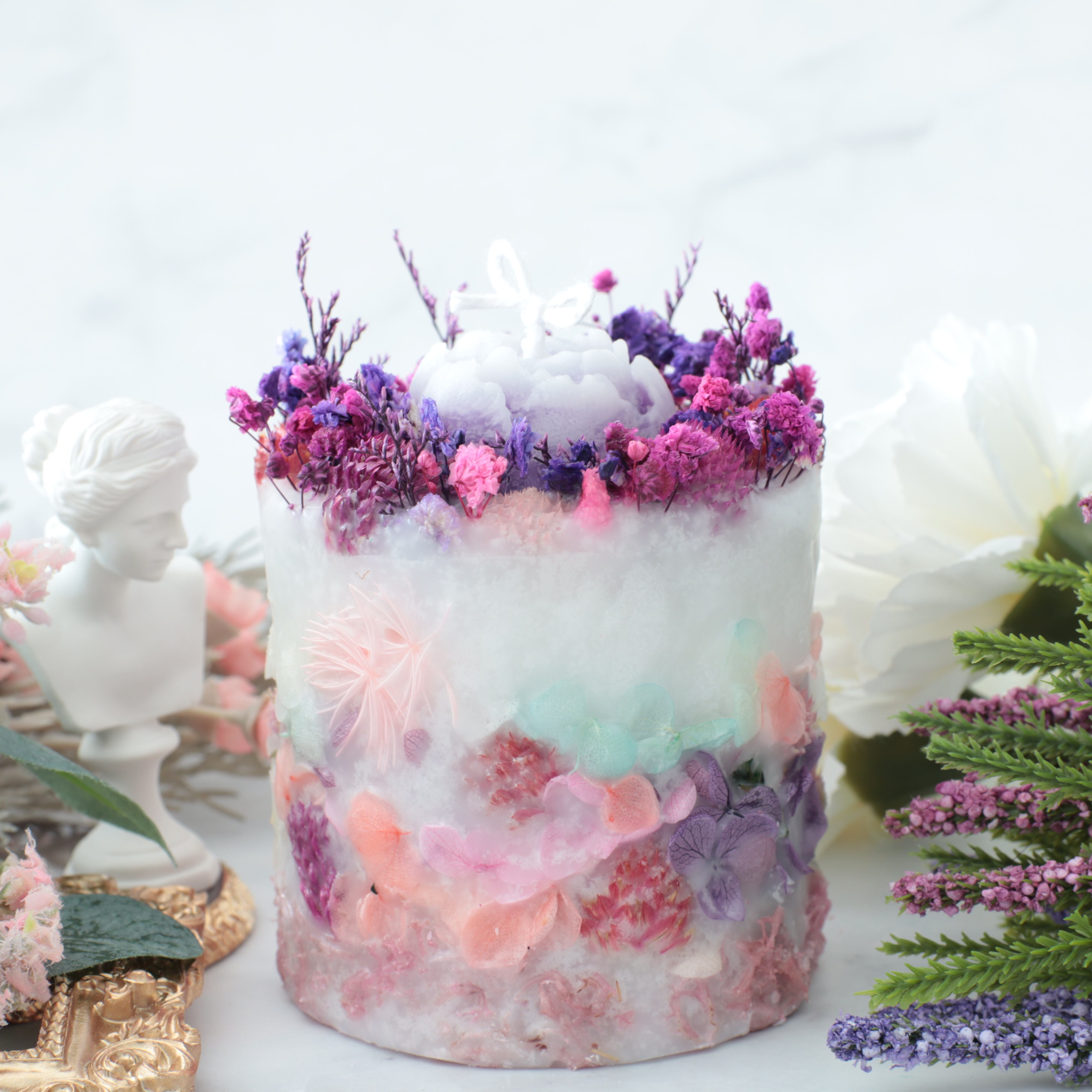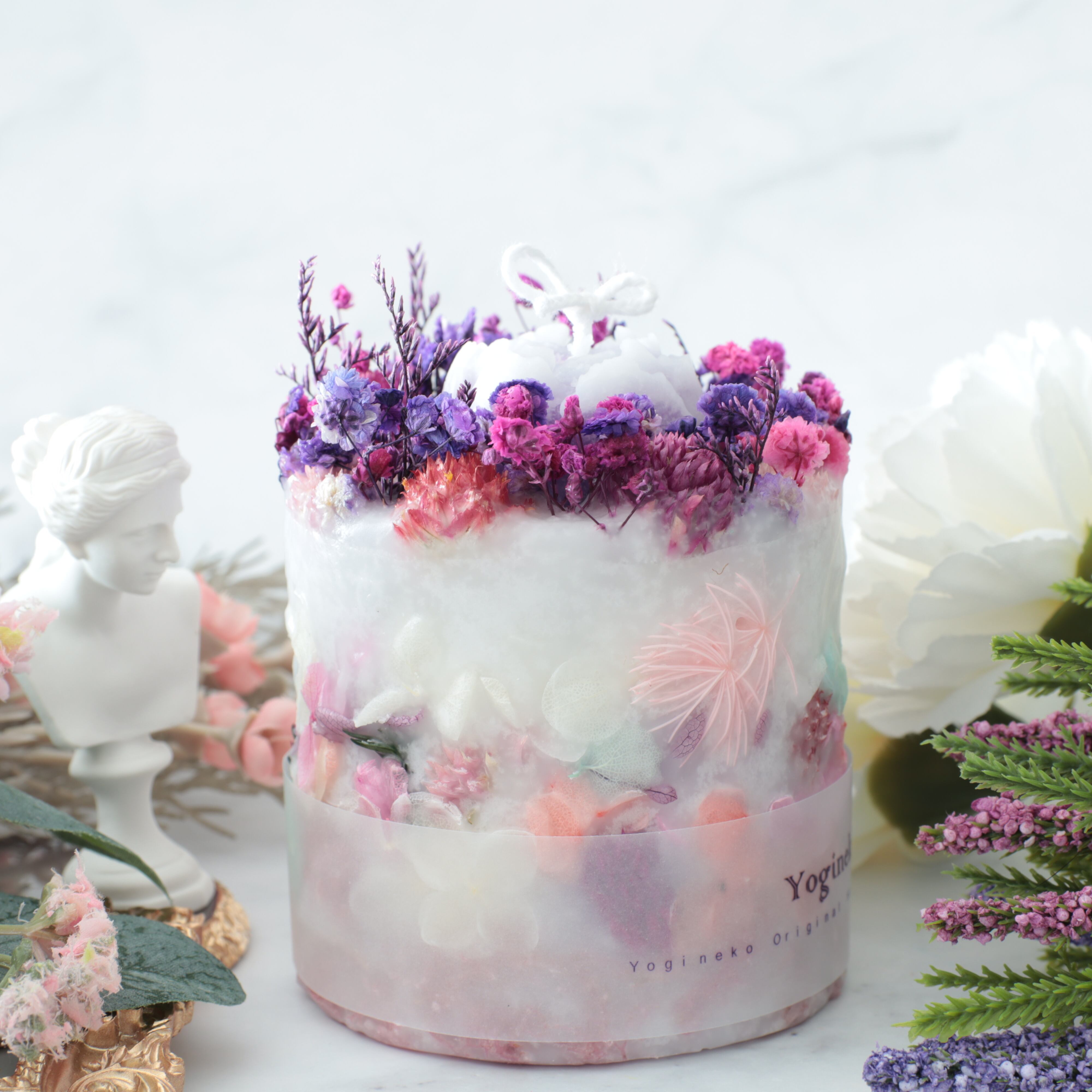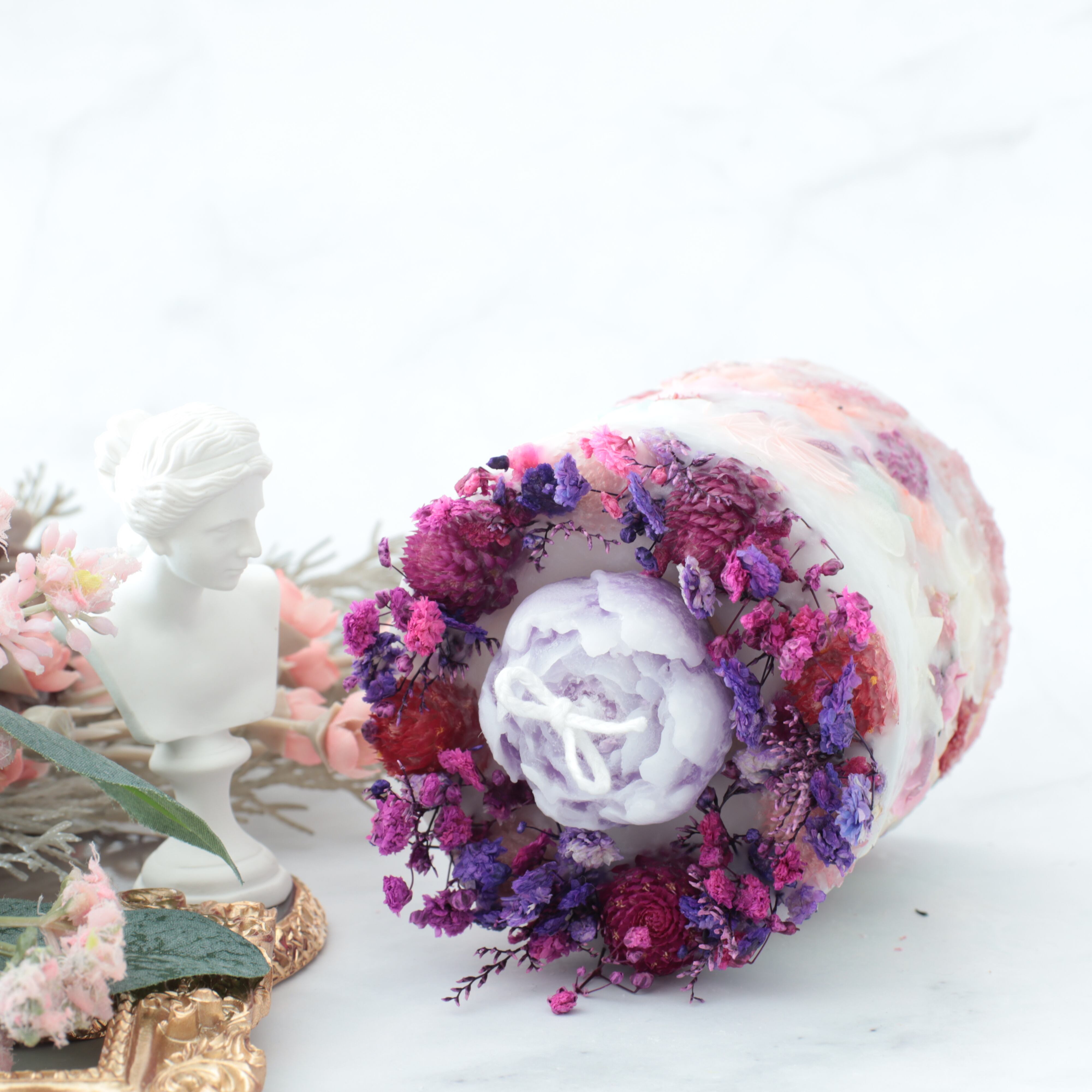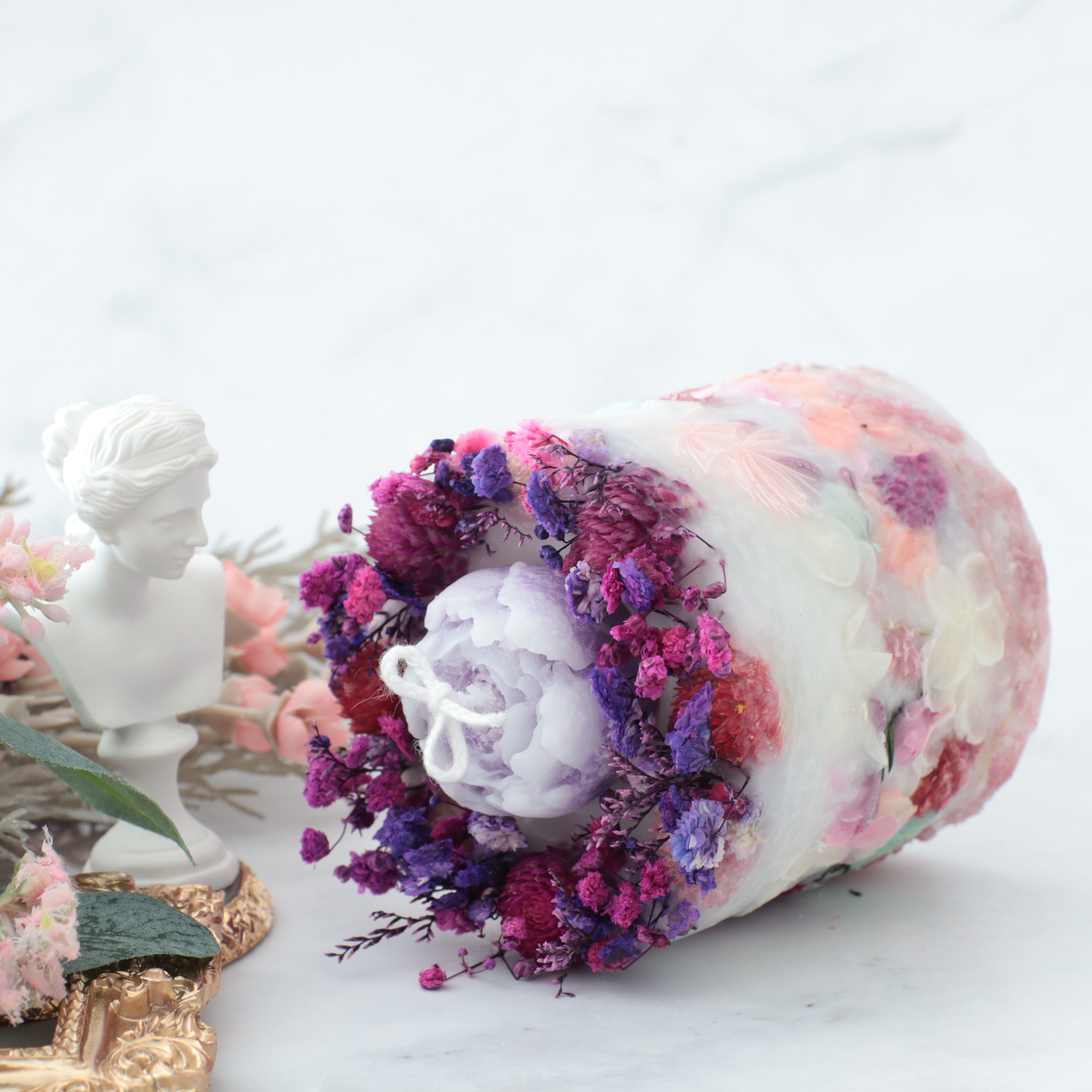 ボタニカルキャンドルは、花材に燃え移りやすいので常に芯を短くして、外枠が溶けないようにしてください。