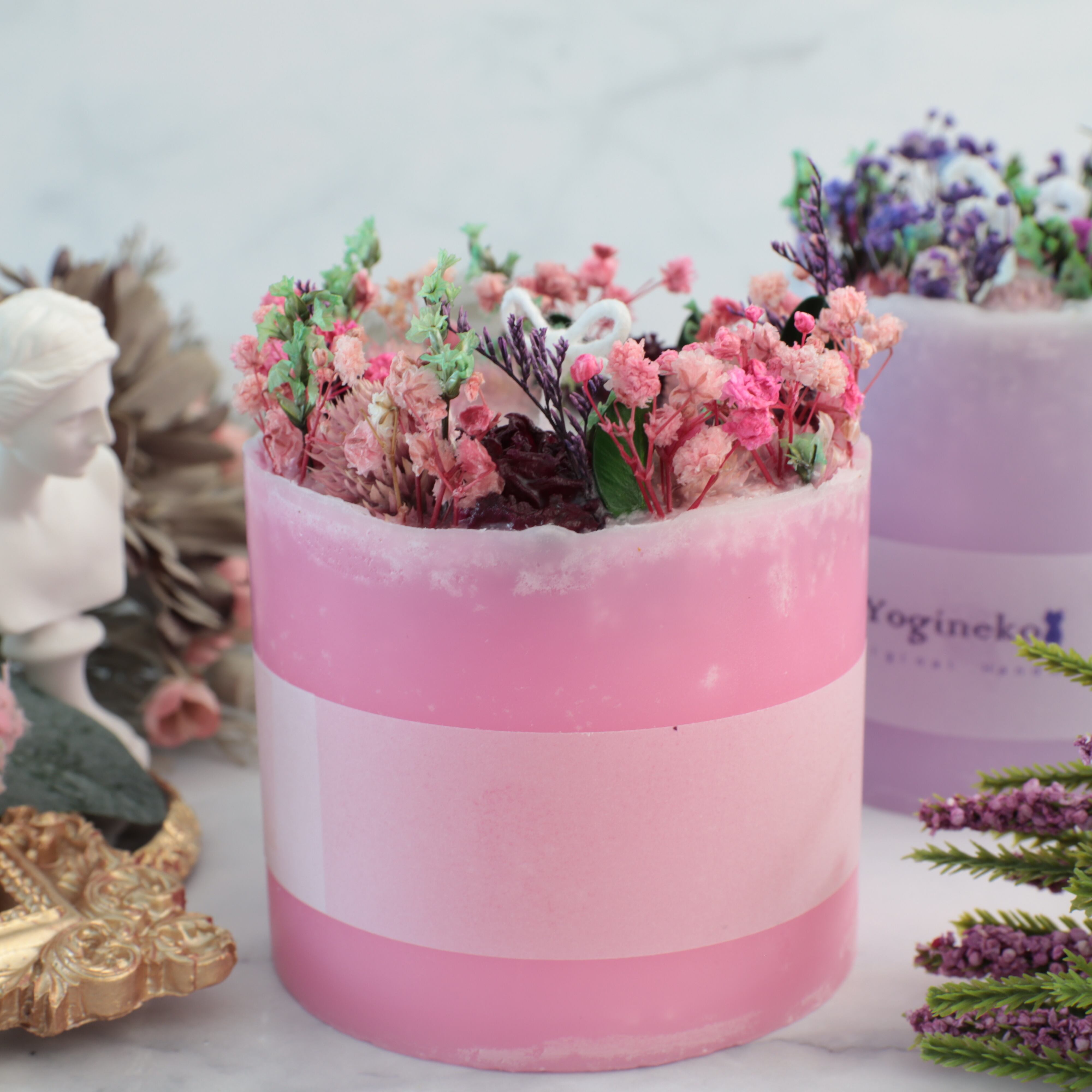 ボタニカルキャンドルは、花材に燃え移りやすいので常に芯を短くして、外枠が溶けないようにしてください。