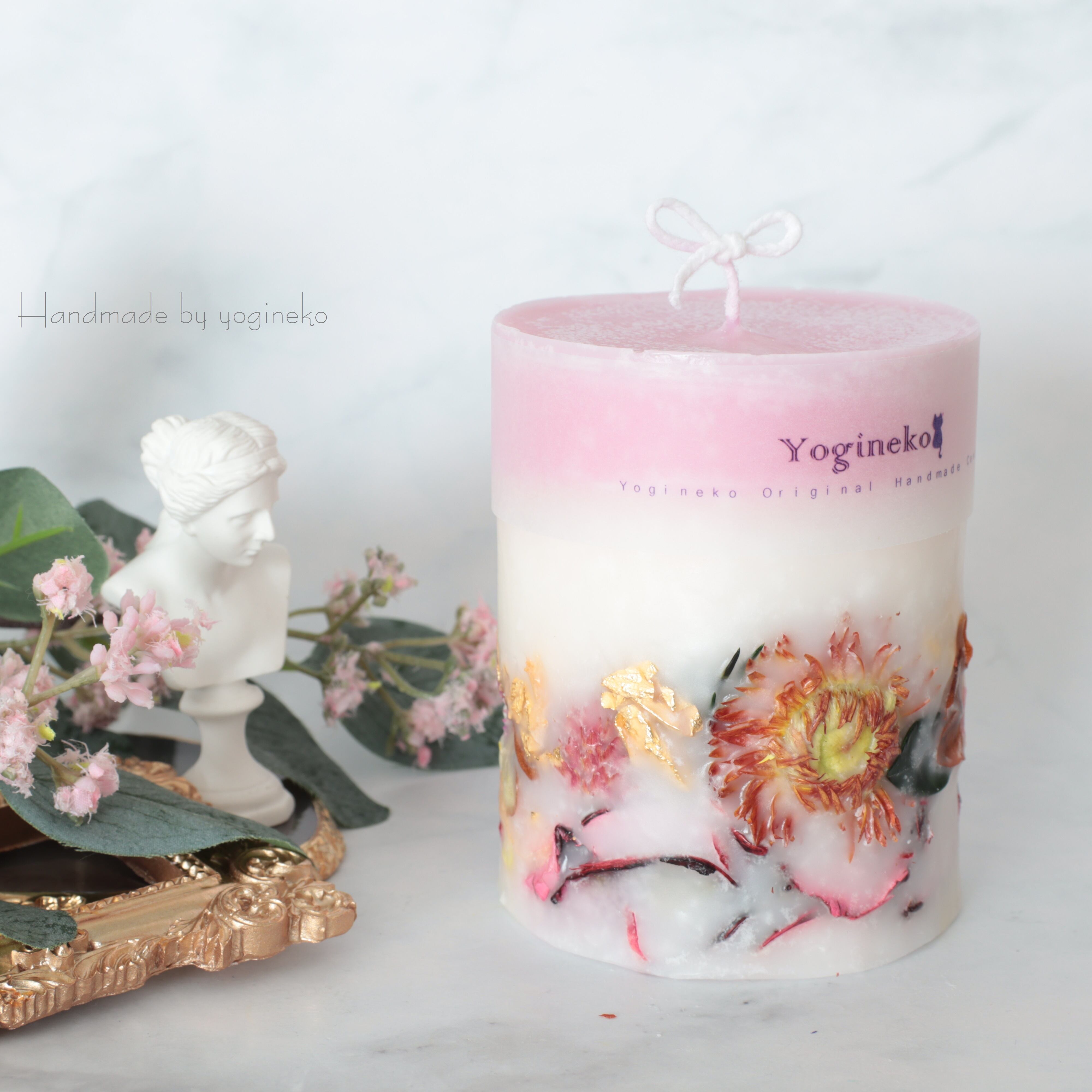 ボタニカルキャンドルは、花材に燃え移りやすいので常に芯を短くして、外枠が溶けないようにしてください。