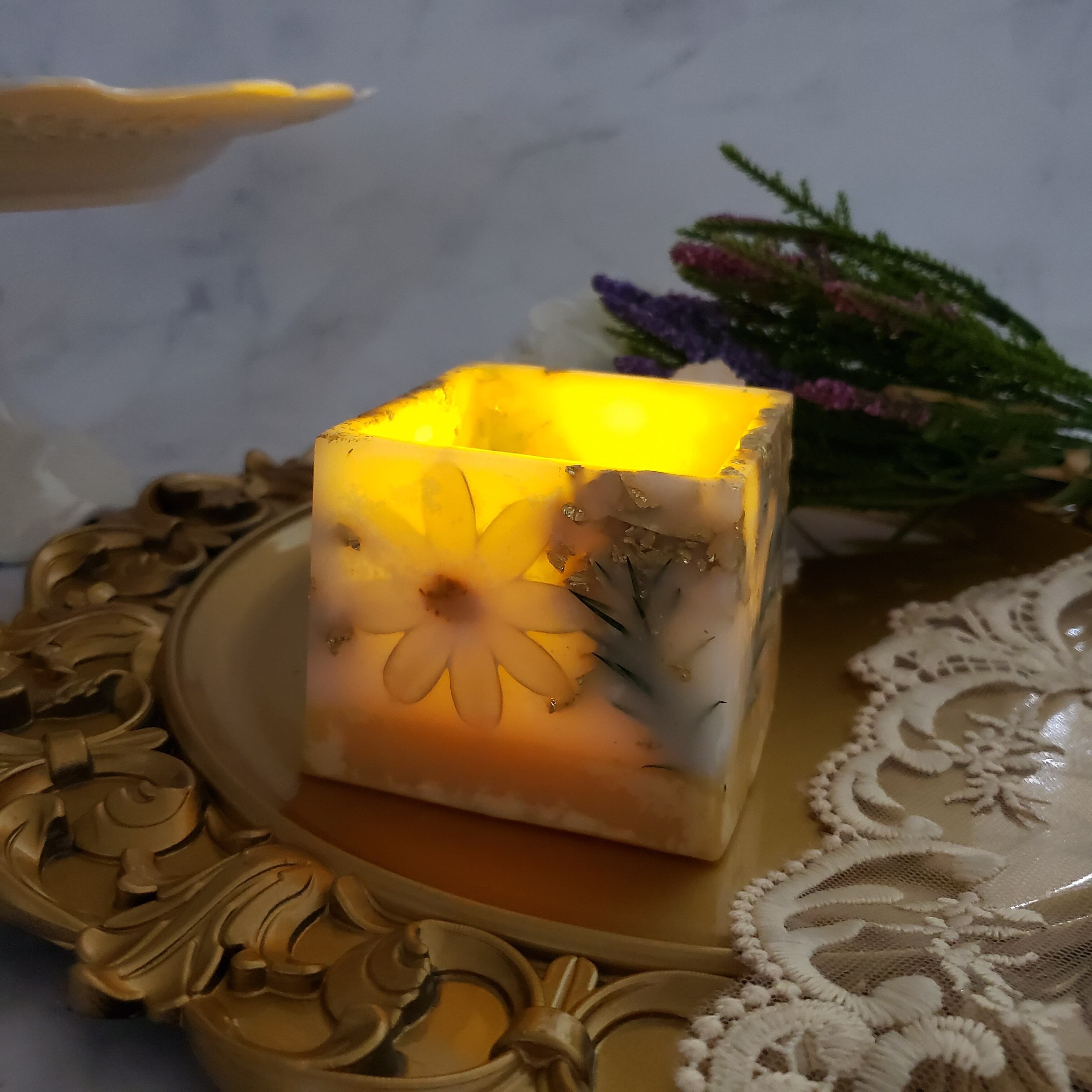 アロマ ボタニカル 木芯ソイキャンドル ランタンLED付 2点セット H-668