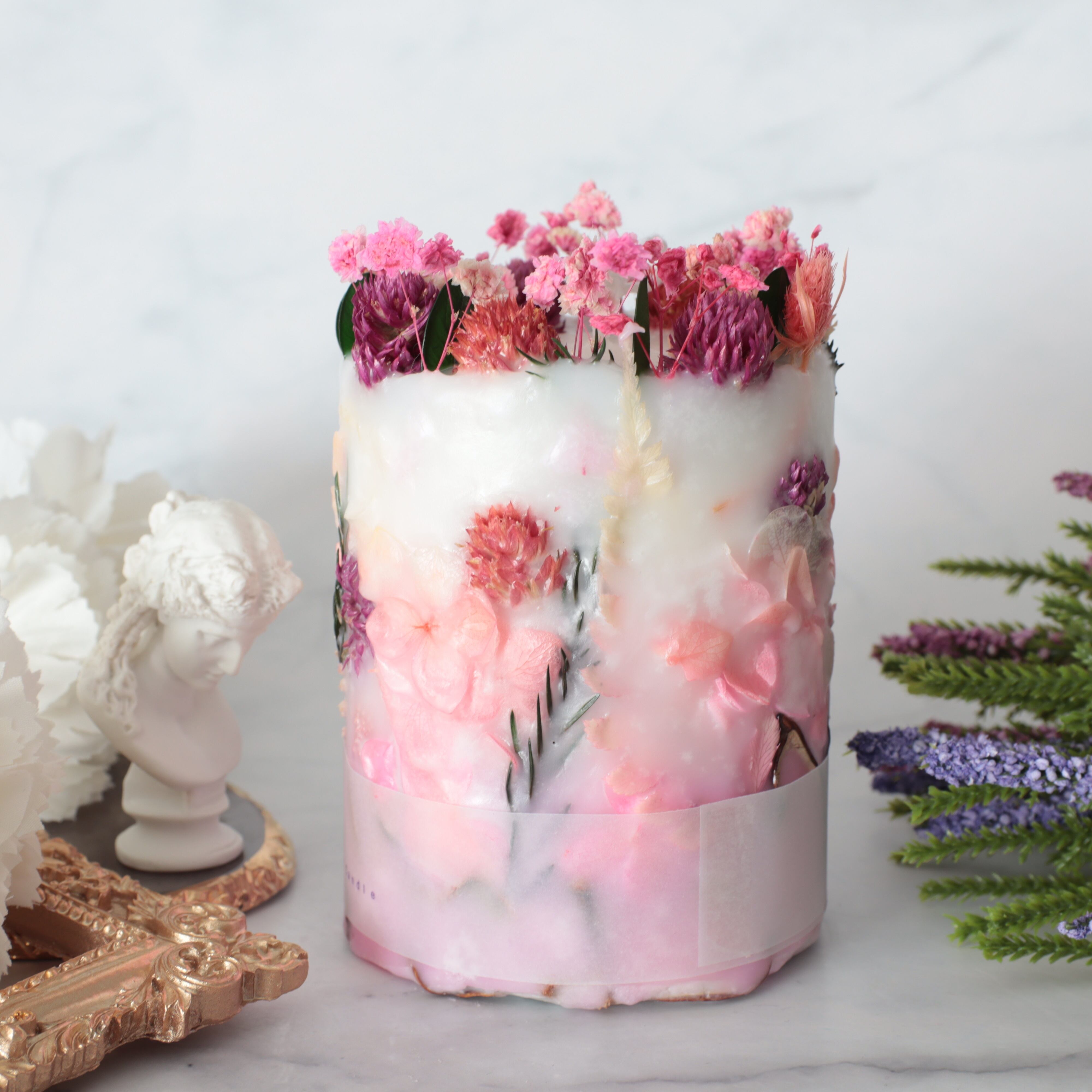 ※花材に燃えうつらないよう、炎に近づかないようにピンセットなどで取り除いてください。ボタニカルキャンドルは、花材に燃え移りやすいので常に芯を短くして、外枠が溶けないようにしてください。