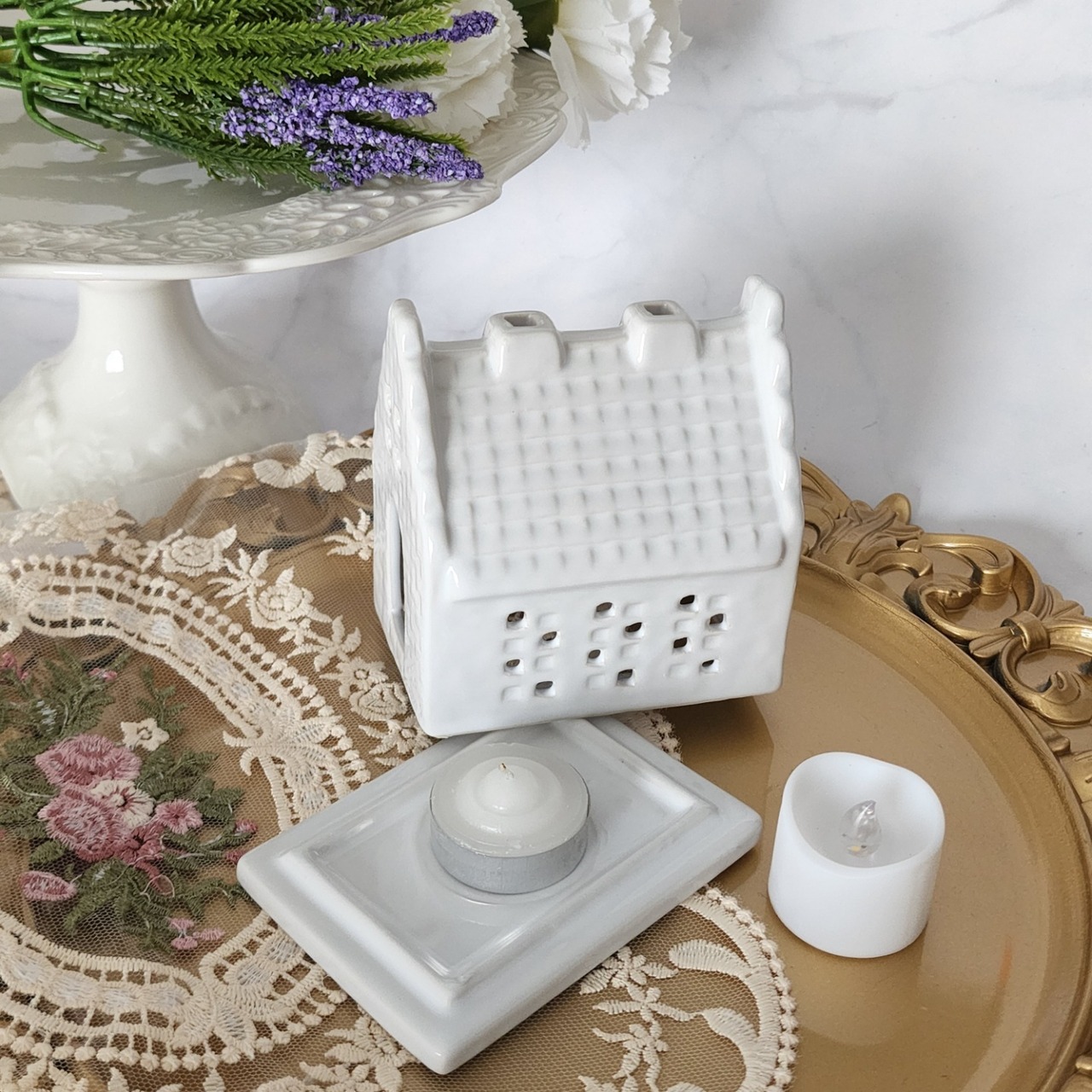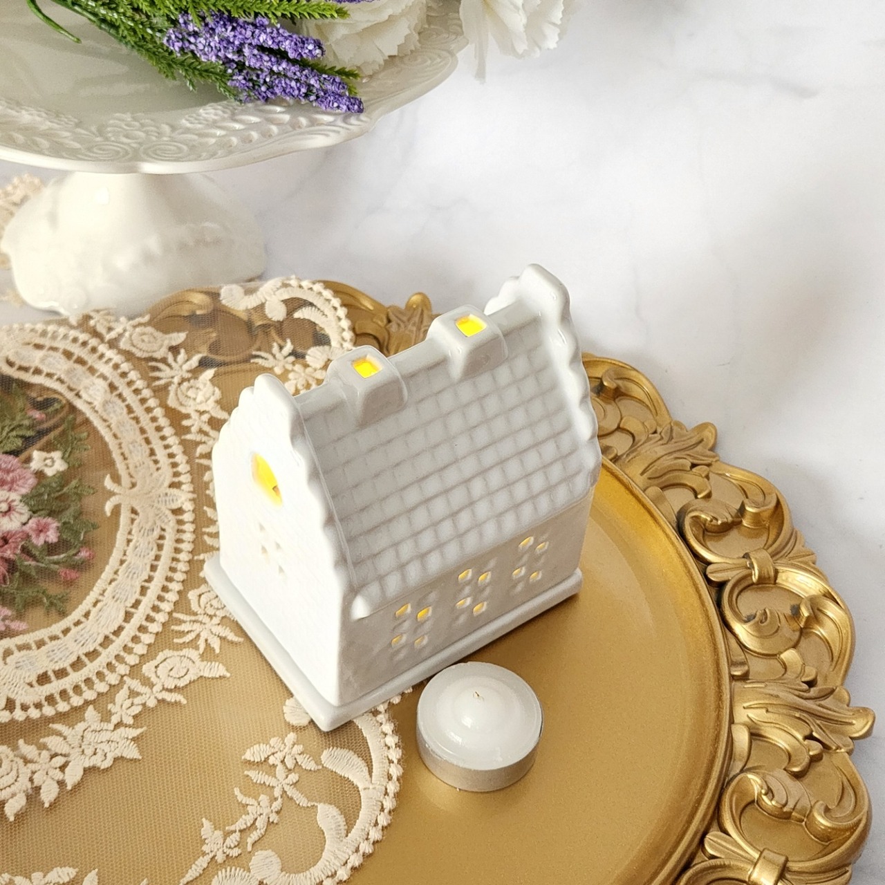 陶器ペンション型キャンドルライト LEDランプ付 セットです。