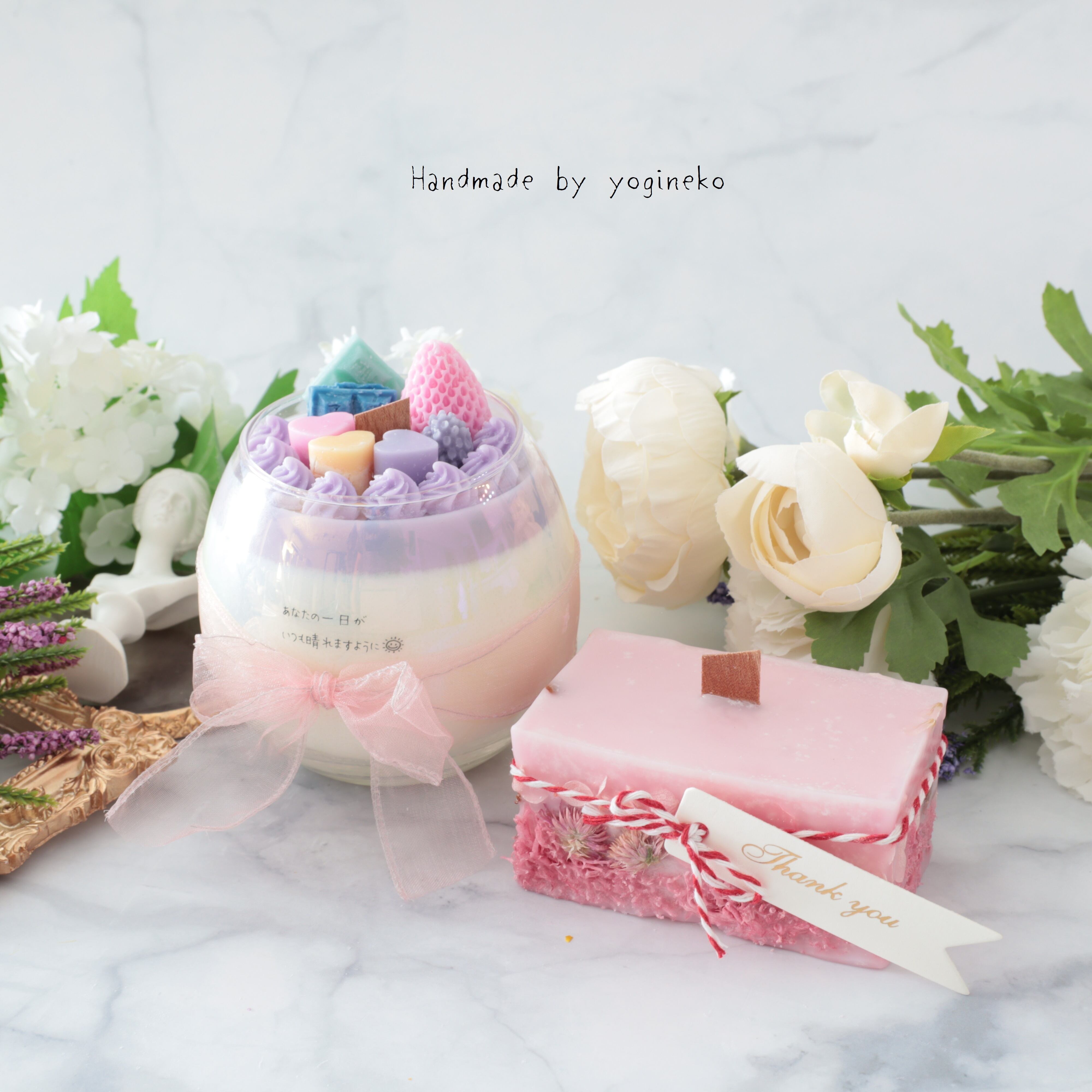 可愛いオパールガラスで制作したアロマキャンドルです!