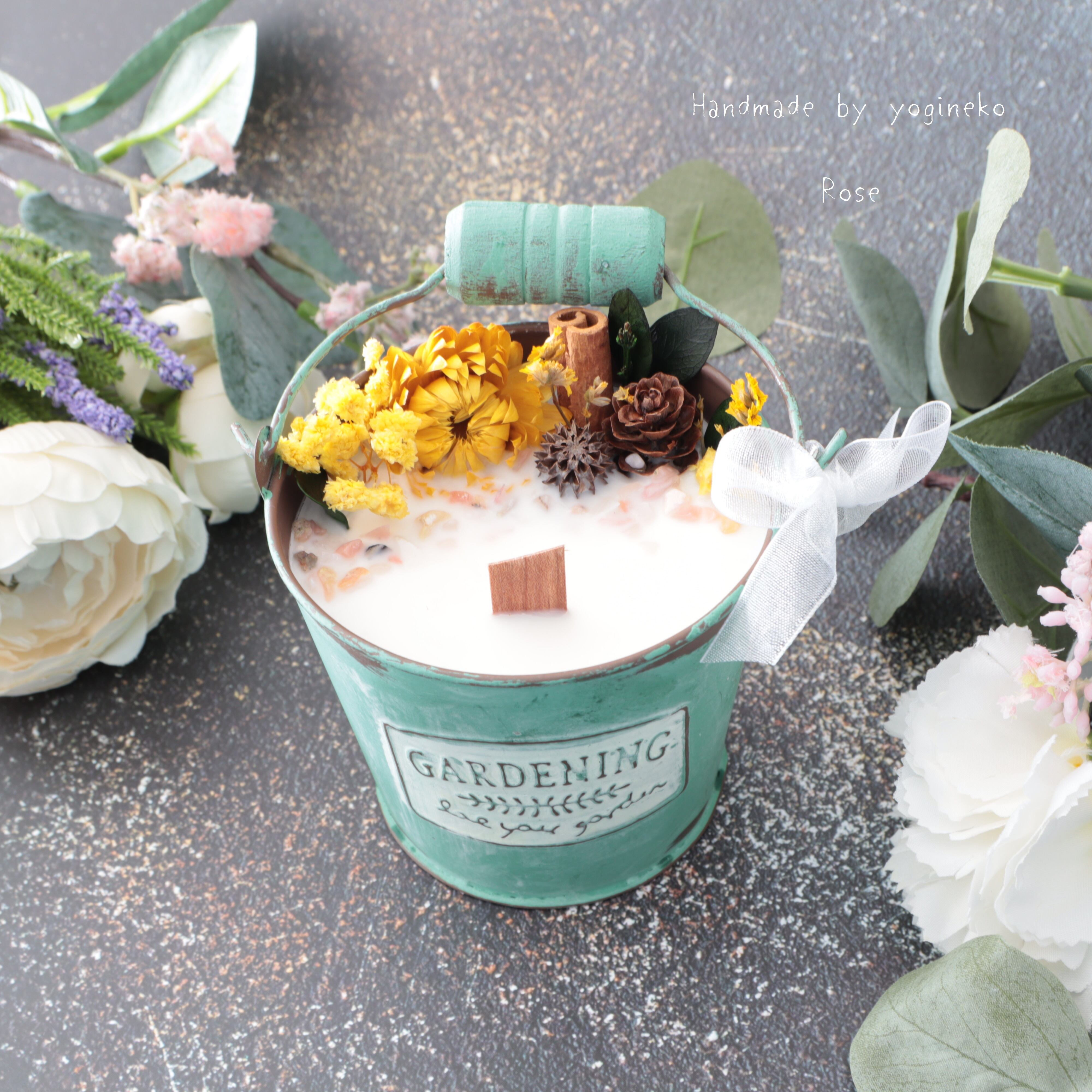 アロマ ボタニカル 木芯 キャンドル ローズ H-767